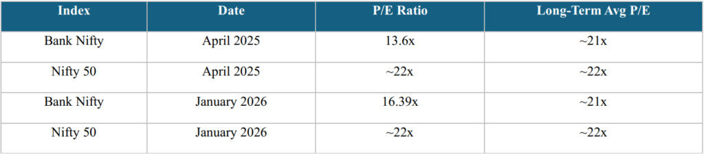 Bank Nifty P/E ratio in January 2026 still remains below its long-term average.