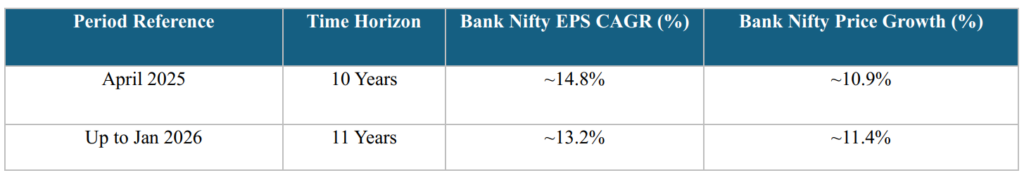 Since it has been more than nine months from our April 2025 analysis and Bank Nifty outperformed the Nifty 50 by nearly 11%, we thought of revisiting our observations to validate our thesis.